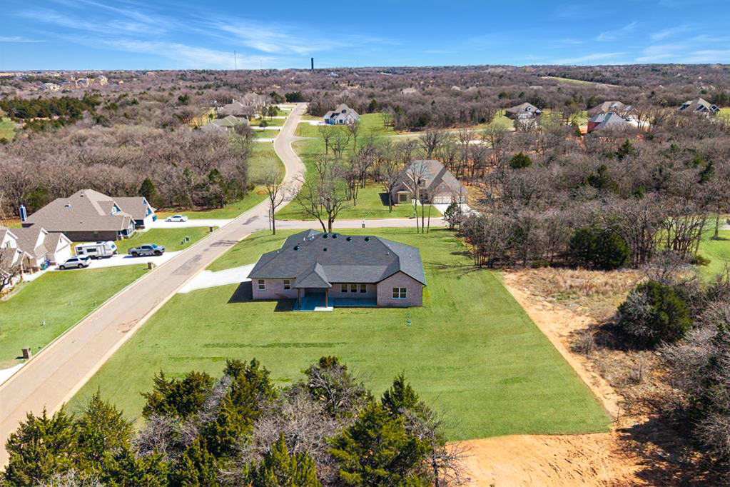 The space you’ve been waiting for—without leaving the convenience of Edmond. This newly completed home offers a rare opportunity to enjoy the balance of privacy, land, and modern design in a location that keeps you connected to I-35, Edmond, and Oklahoma City. Set on a spacious homesite within the Edmond School District, the property provides room to breathe, grow, and create the lifestyle many buyers are searching for but rarely find. Inside, the home features a thoughtfully designed open-concept layout with clean lines, durable finishes, and a cohesive, modern aesthetic. The kitchen serves as the heart of the home with stylish cabinetry, upgraded hardware, designer lighting, and a functional island ideal for both everyday living and entertaining. The living area offers a comfortable flow with natural light and a welcoming atmosphere. The primary suite is designed as a private retreat, complete with a well-appointed bathroom featuring a soaking tub, custom tile work, and quality fixtures. Additional bedrooms and bathrooms continue the home’s consistent design and attention to detail, offering flexibility for a variety of living arrangements, work-from-home needs, or guest space. Beyond the interior, the property truly sets itself apart. Located in a shop-friendly neighborhood with room to build, the generous lot offers the flexibility for a future workshop, additional garage space, or expanded outdoor living. With fewer restrictions than many traditional neighborhoods, buyers have the ability to shape the property to fit their needs over time. Adding to the appeal, a planned turnpike exit is expected within approximately one mile and with it, even greater accessibility to Edmond, I-35, & Oklahoma City. This location is only getting better. Just minutes from Edmond amenities, shopping, dining, and major commuter routes, this home delivers a unique combination of accessibility, space, and long-term flexibility that is increasingly hard to find.
