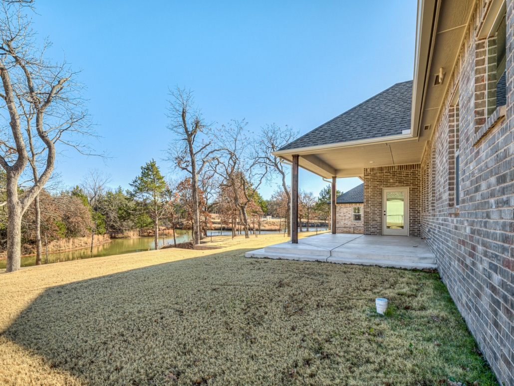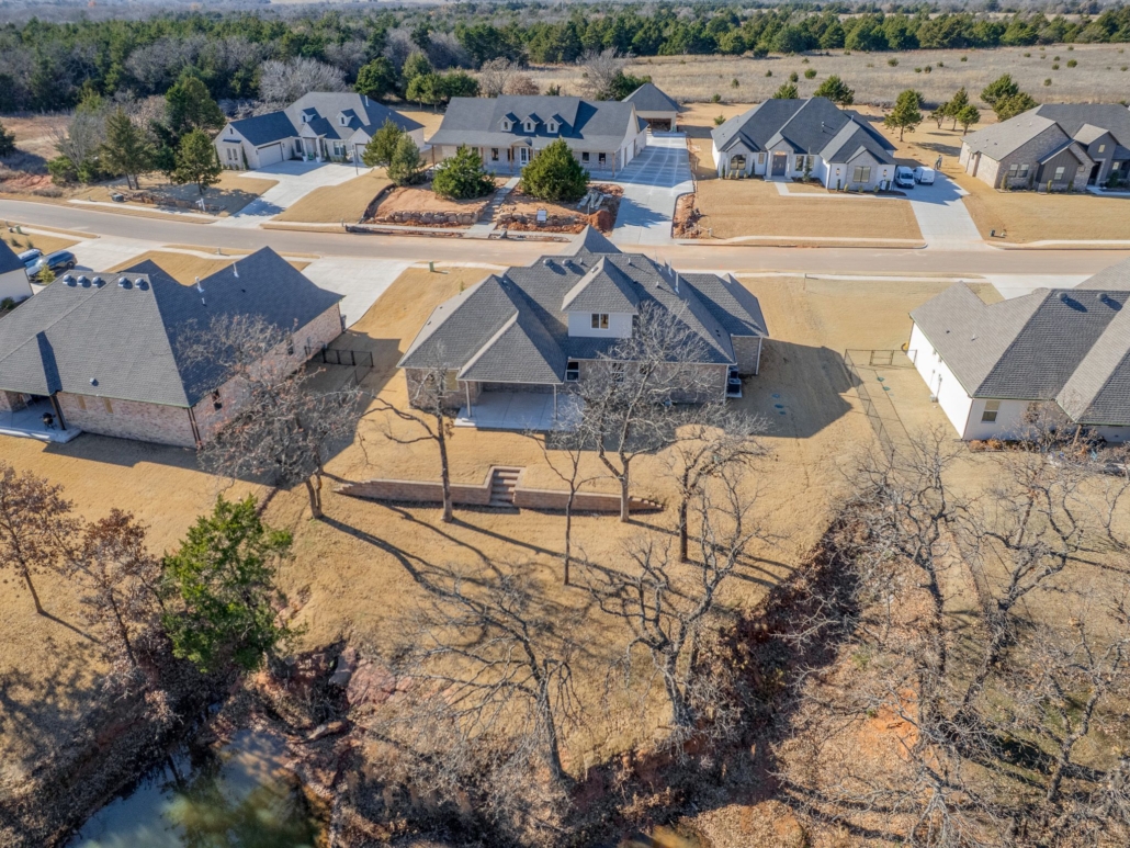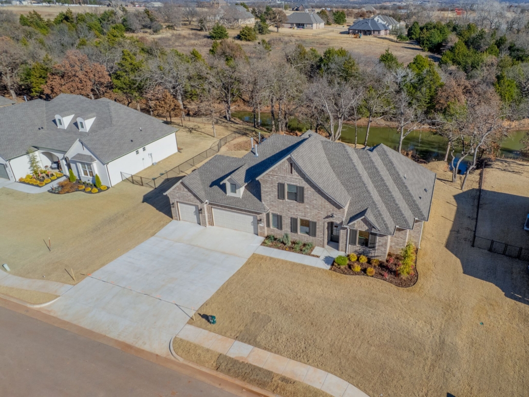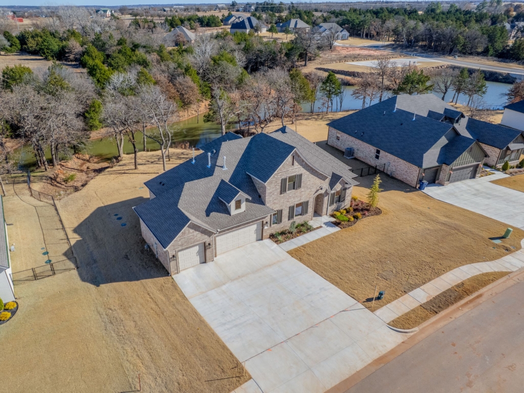 Welcome to 8108 Goldfinch Drive — a rare pond-front property in the highly sought-after Meadow Heights community. Nestled in a picturesque neighborhood that blends small-town charm with modern convenience, this home enjoys one of the most desirable settings in the community. Ideally located between historic Guthrie and vibrant Edmond, Meadow Heights offers expansive lots, tree-lined streets, and a welcoming atmosphere that feels both serene and connected. Enjoy a community-focused lifestyle just minutes from cultural attractions, parks, and lakes. Perfectly positioned directly on a tranquil pond, this stunning traditional two-story home offers peaceful water views from the moment you arrive. The premium pond lot provides added privacy, a serene backdrop, and a daily connection to nature that truly sets this home apart. Featuring 4 bedrooms, 3 baths, a private study, and a spacious 3-car garage, the layout is thoughtfully crafted to balance beauty, comfort, and functionality. Modern finishes are showcased throughout, giving every room a clean, contemporary appeal. Step outside to the large covered patio—the perfect place to relax and unwind while overlooking the shimmering pond. Soon to be enhanced with a full outdoor kitchen complete with a grill, beverage cooler, and built-in trash receptacle, this outdoor living space is ideal for entertaining or soaking in the peaceful water views. Additional enhancements coming soon include a painted front door, a property-line fence, and a stylish awning over the upstairs front window. Refrigerator and washer/dryer are also included, adding even more convenience and value. With its refined interiors, functional design, scenic setting, and impressive upgrades, 8108 Goldfinch offers a rare opportunity to enjoy modern living on a serene pond lot. Experience comfort, beauty, and thoughtful craftsmanship—right here in Meadow Heights.
